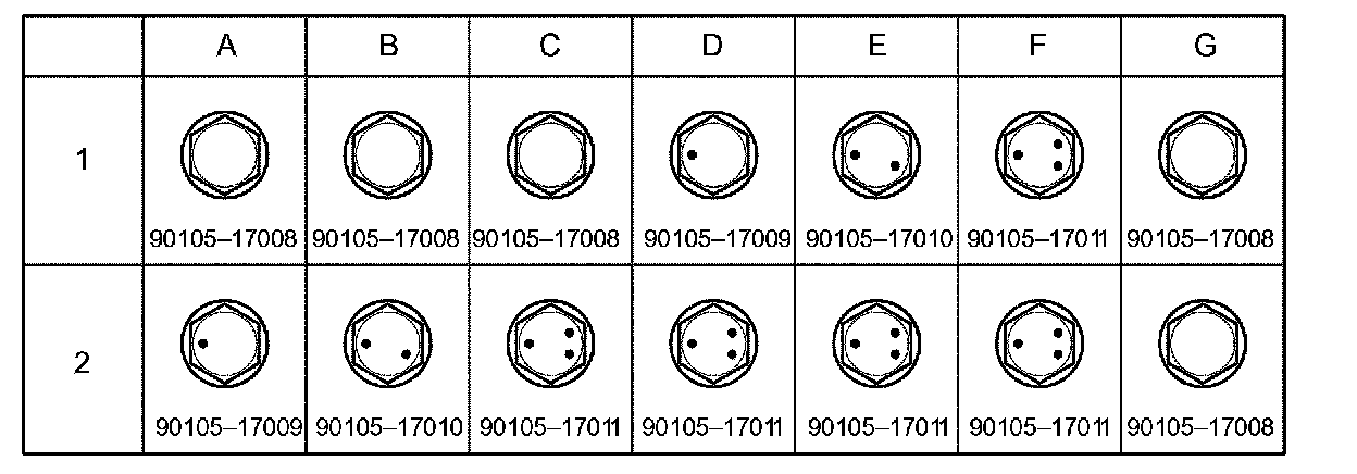 i. Check installed bolts combination. Select appropriate bolts from the table to adjust the camber within the specified range.