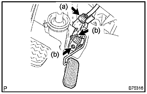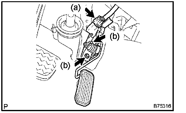 b. Remove the 2 bolts and the accelerator pedal.