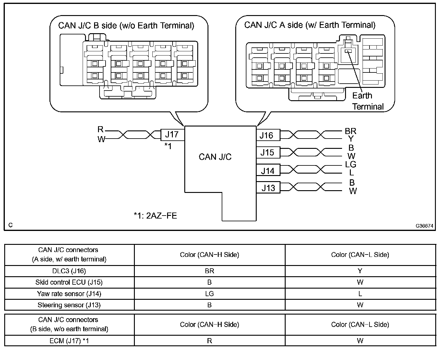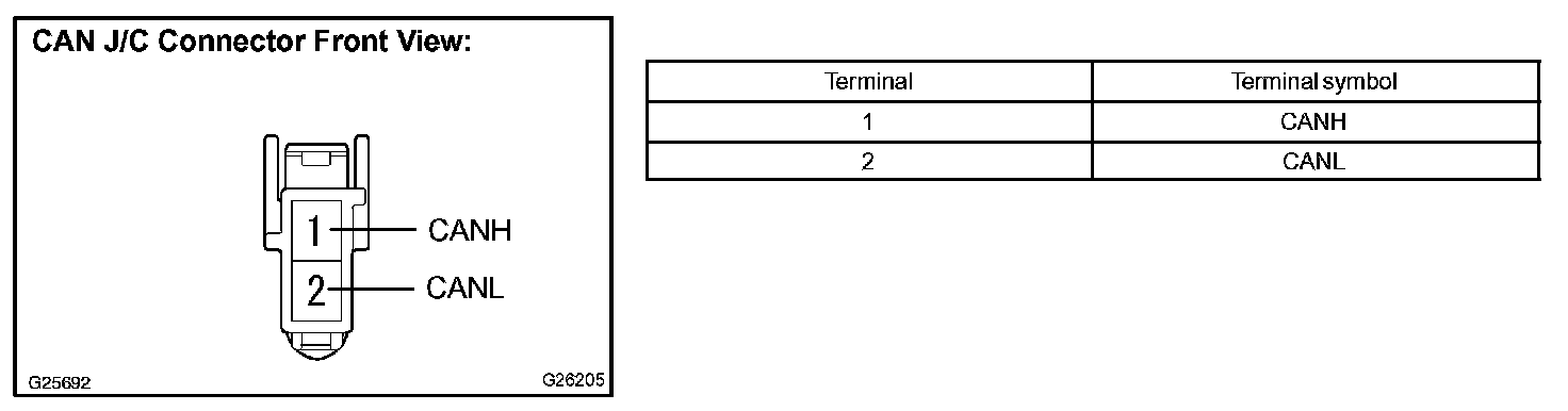 - The connectors connected to the CAN J/C can be distinguished by the colors of the bus lines and the connecting side of the connector.