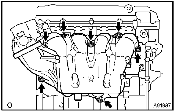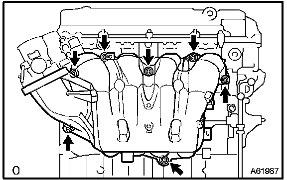 a. Install a new gasket and the intake manifold with the 5 bolts and 2 nuts.
