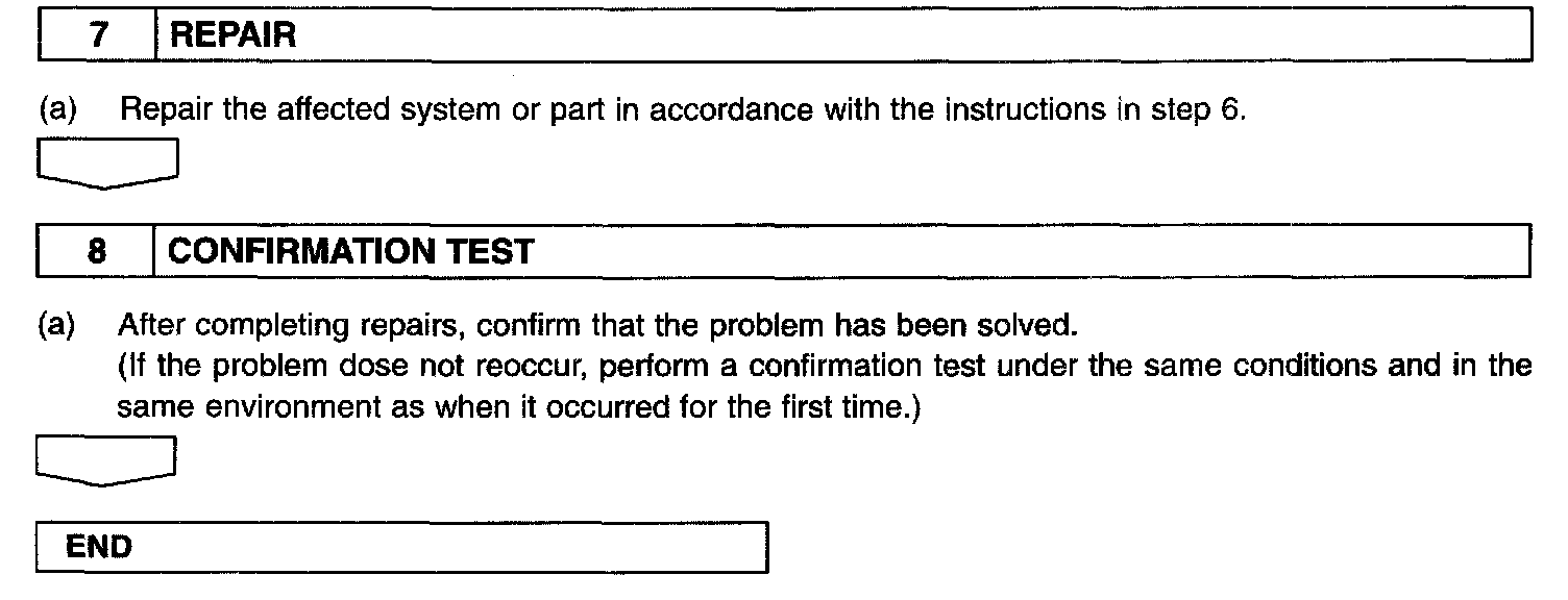 Hint: Carry out a troubleshooting in accordance with the procedures. Here, only the basic procedures are shown. Details are provided in the Diagnostics section, showing the most effective methods for each circuit. Confirm the troubleshooting procedures first for the relevant circuit before beginning the troubleshooting of that circuit.