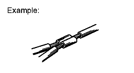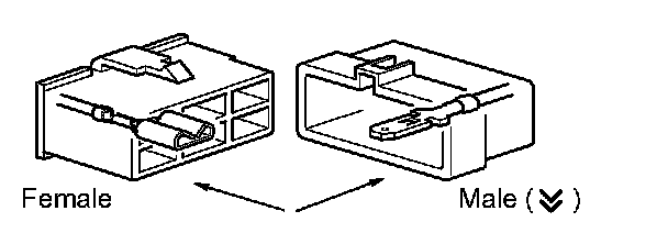 [E] : Indicates the wiring harness and wiring harness connector. The wiring harness with male terminal is shown with arrows.