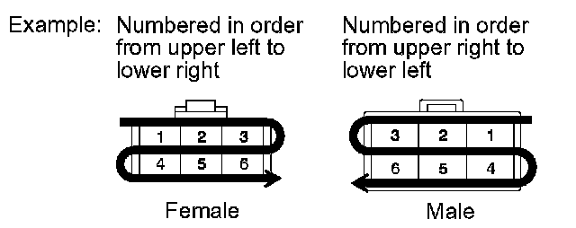 When more than one code has the first and second letters in common, followed by numbers (e.g, IH1, IH2), this indicates the same type of wiring harness and wiring harness connector.