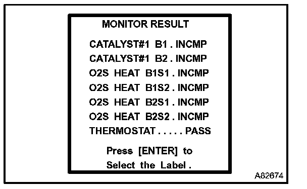 CHECKING MONITOR STATUSHINT: "MONITOR RESULT" indicates normal or malfunction of each component and system when a judgment was made.