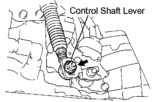 b. Temporarily install the control cable to the control shaft lever with the nut.
