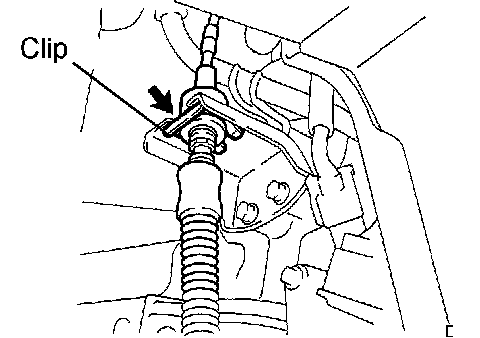 c. Remove the clip and disconnect the control cable from the control cable bracket.