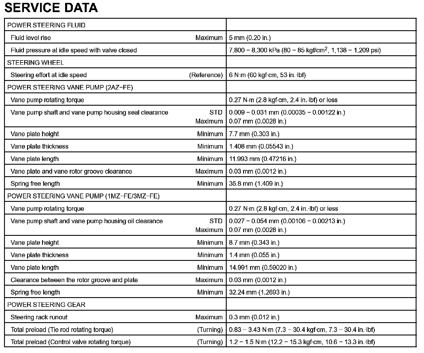Power Steering-Service Data: