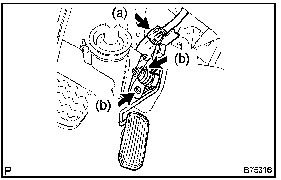 b. Remove the 2 bolts and the accelerator pedal.