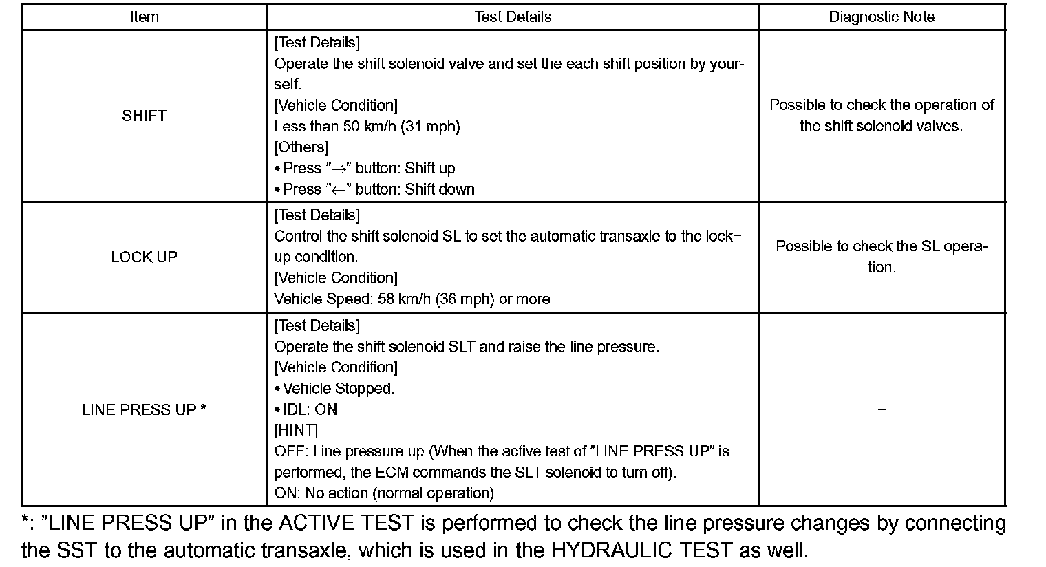 HINT: The pressure values in ACTIVE TEST and HYDRAULIC TEST are different from each other.