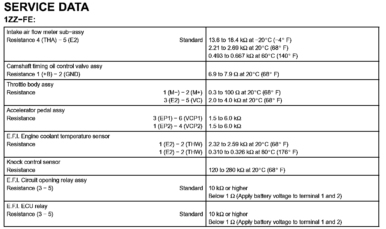 Engine Control System-Service Data: