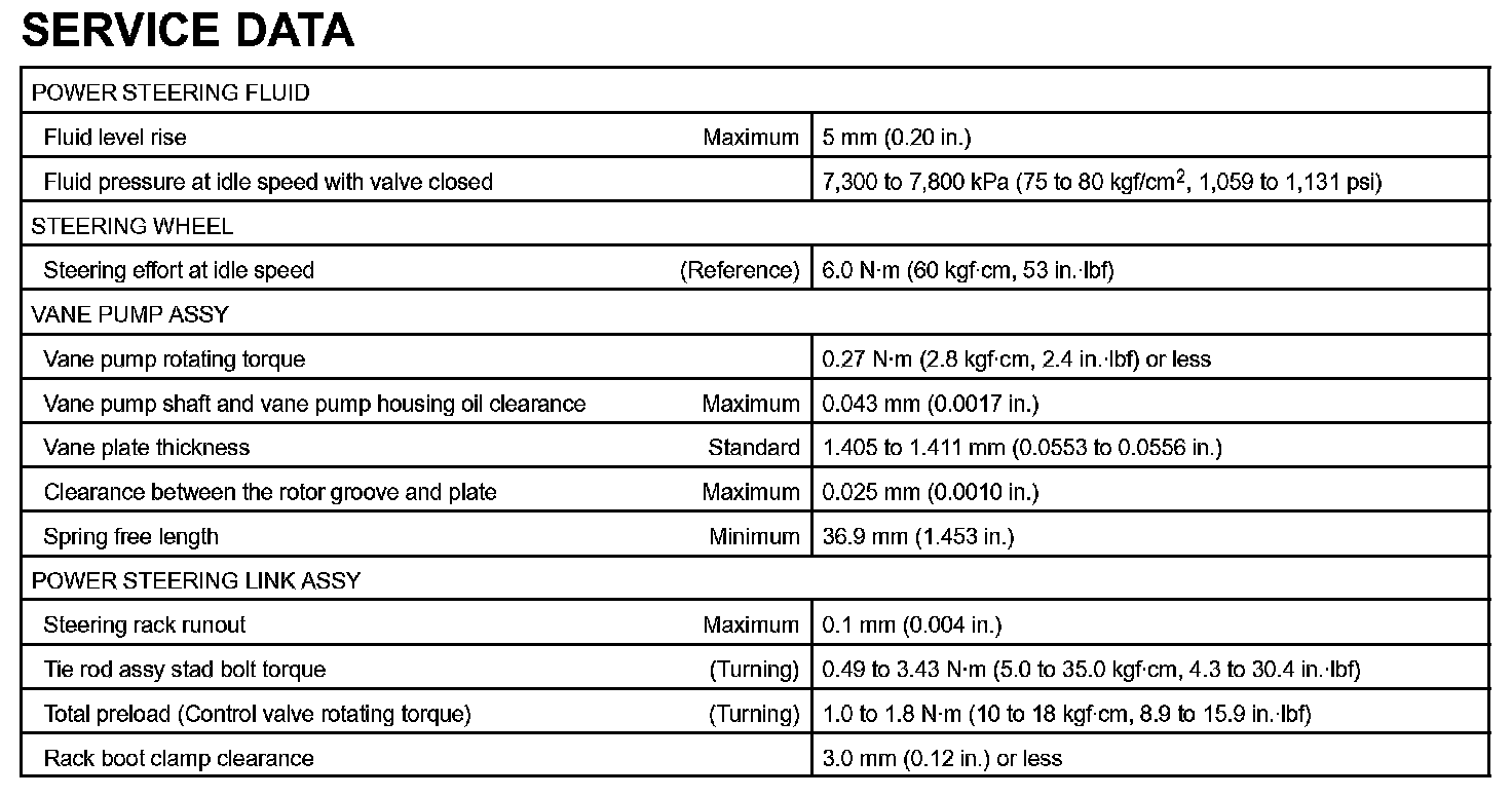 Power Steering-Service Data: