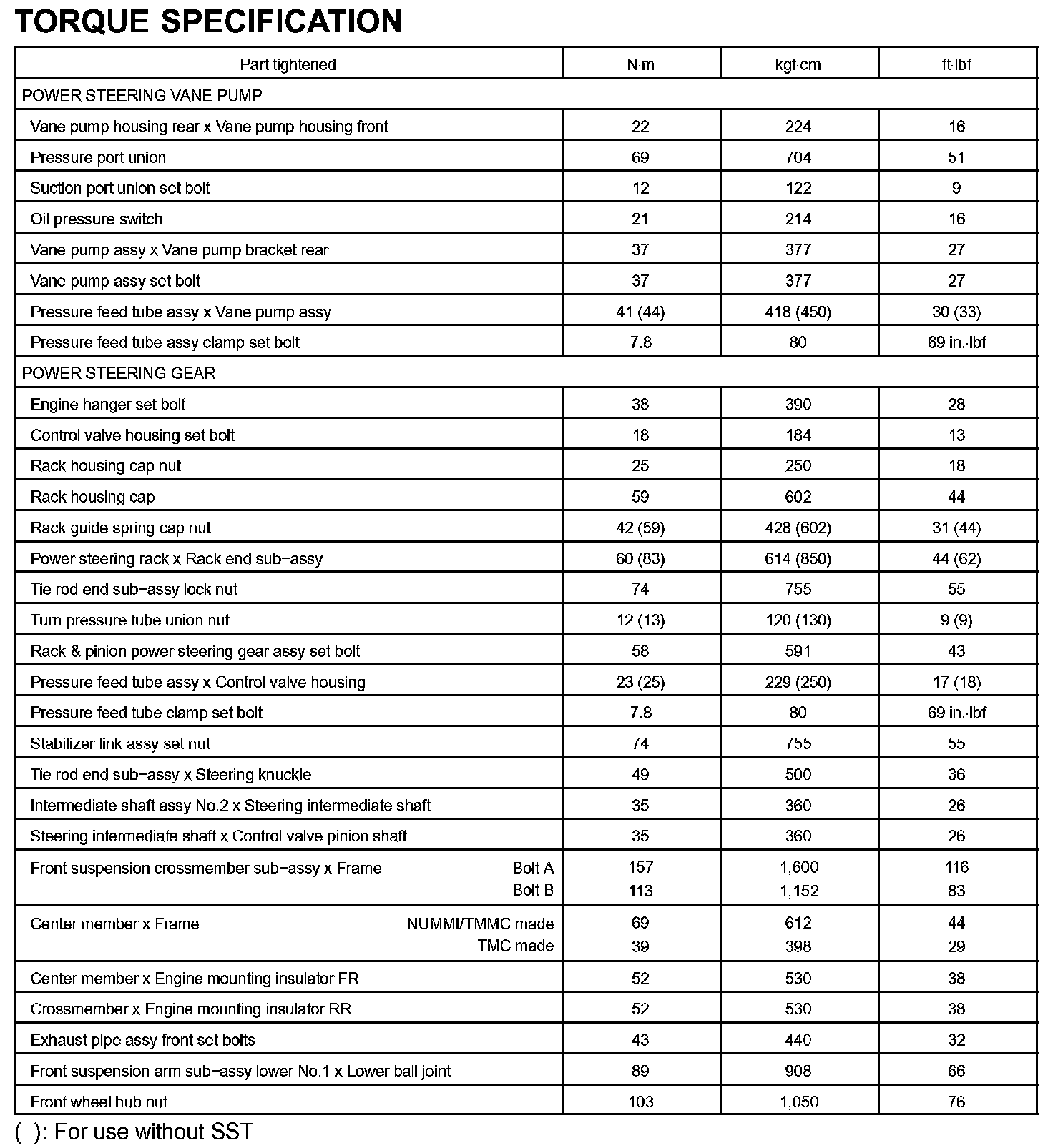 Power Steering-Torque Specification: