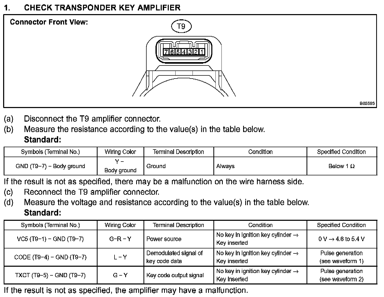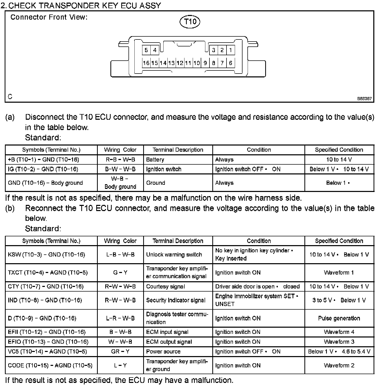Terminals Of Control Module/Pinouts - Check Transponder Key ECU Assy: