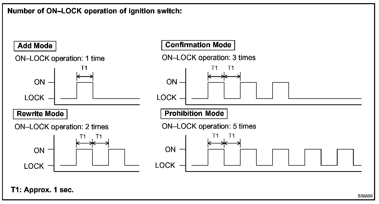 NOTE: If the number of the ON-LOCK operations of the ignition switch is 0, 4 or 6 or more, there will be no response to inform which mode has been selected.