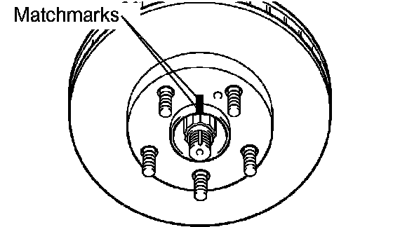 a) Make matchmarks on the front disc and the axle hub.
