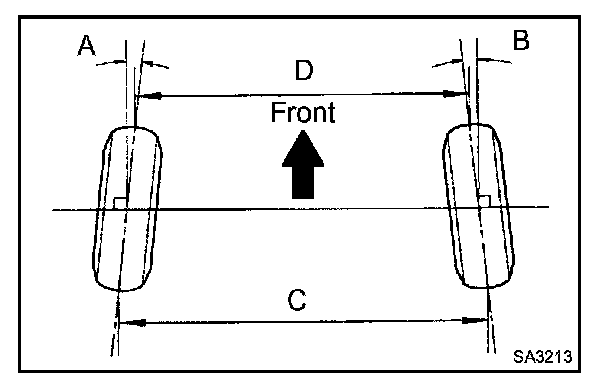 If the toe-in is not within the specified value, inspect and replace the suspension parts as necessary.