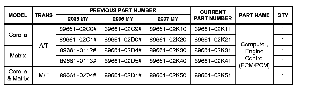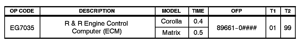 ^ 2005 model year Corolla or Matrix Repair Manual, Engine/Hybrid System - Engine Control - "ECM (1ZZ-FE/2ZZ-GE): Replacement".