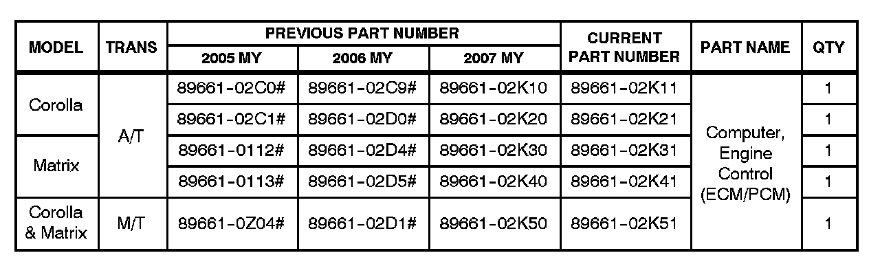 ^ 2005 model year Corolla or Matrix Repair Manual: Engine/Hybrid System - Engine Control - "ECM (1ZZ-FE/2ZZ-GE): Replacement".