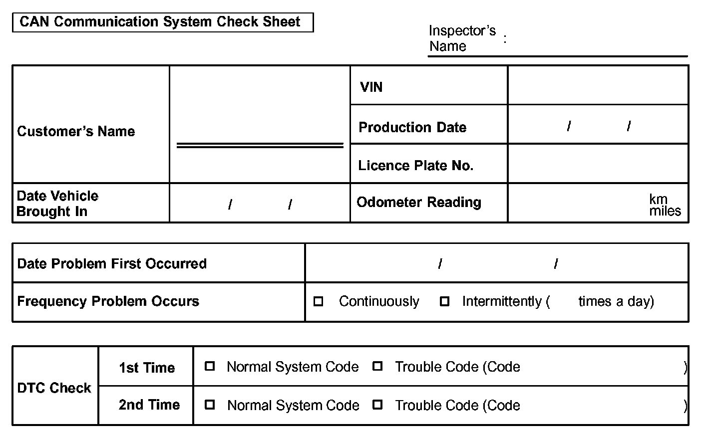 CAN Communication System Check Sheet: