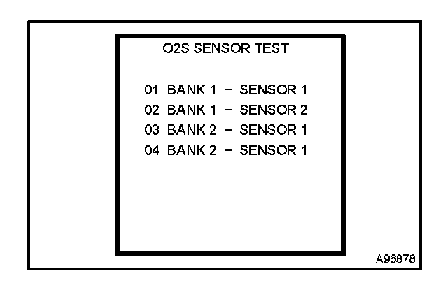 The O2S Test Result is part of the monitoring for Heated Oxygen (HO2) sensor malfunctions. The various states (Test Items) of the HO2 sensor are monitored by the ECM. The Test Item values (Test Values) can be read using a hand-held tester or OBD II scan tool.