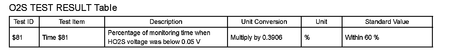 - Specifics of each Test Item, Description, Unit Conversion and Standard Value are descried in the paragraph titled "O2S TEST RESULT" in each DTC section relating to the HO2 sensor, such as P0130, P0133 and P0136.