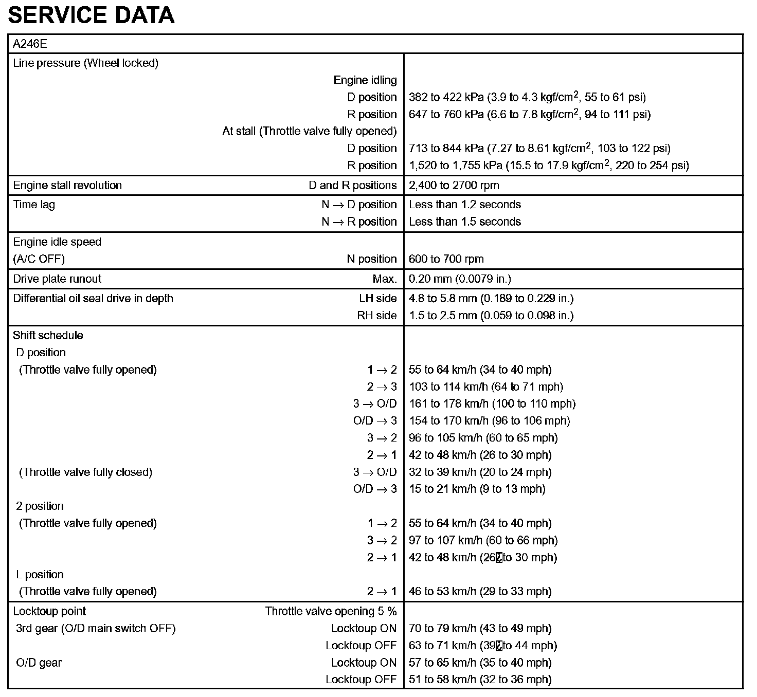 Automatic Transmission / Transaxle-Service Data: