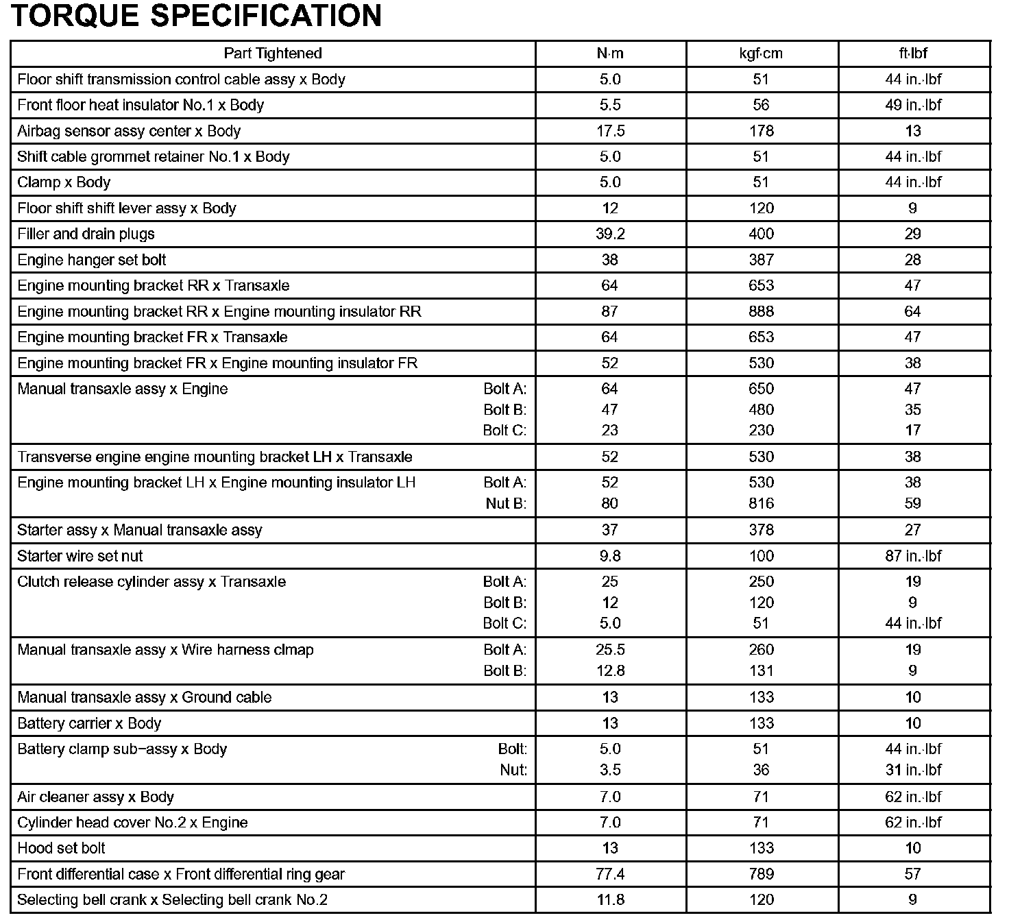 Manual Transmission / Transaxle-Torque Specification (Part 1):