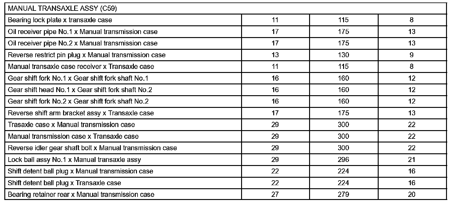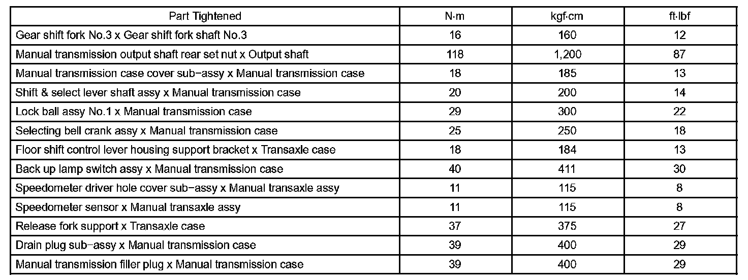 Manual Transmission / Transaxle-Torque Specification (Part 2):