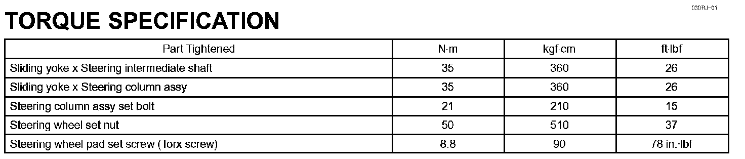 Steering Column-Torque Specification: