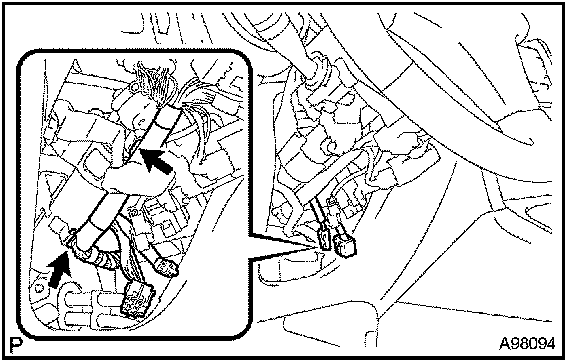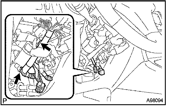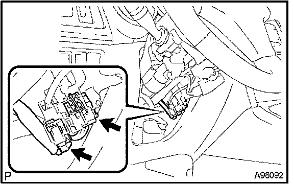 d. Connect the ignition switch connector and unlock the warning switch connector.