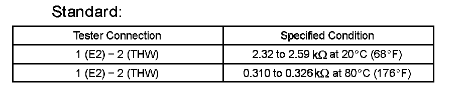 INSPECT E.F.I. ENGINE COOLANT TEMPERATURE SENSORa. Check the resistance.