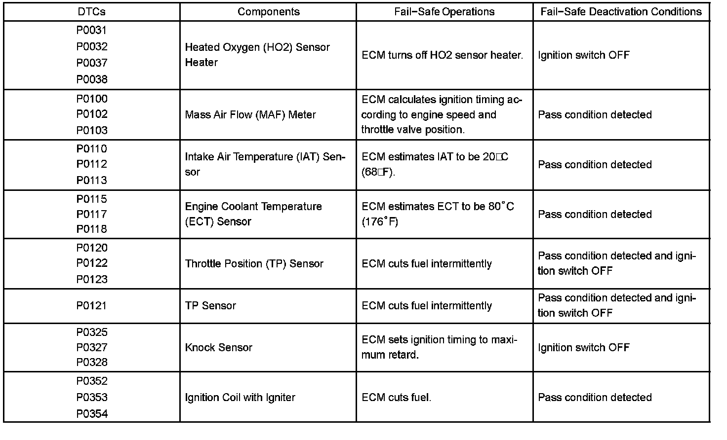 If any of the given DTCs are set, the ECM enters fail-safe mode to allow the vehicle to be driven temporarily.