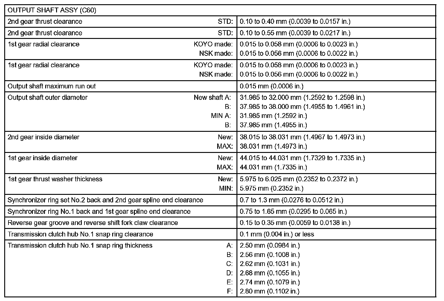 Manual Transmission / Transaxle-Service Data (Part 2):
