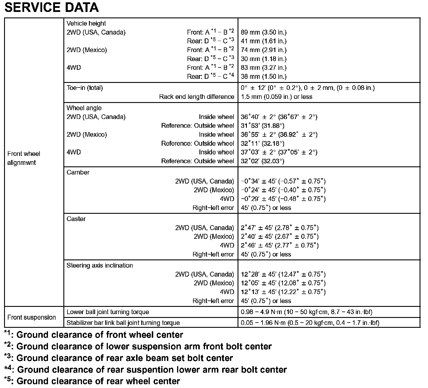 Front Suspension-Service Data: