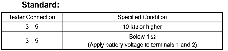If the result is not as specified, replace the starter relay.