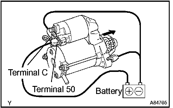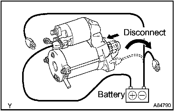 1. Disconnect the negative (-) lead from terminal C. Check that the clutch pinion gear remains extended.