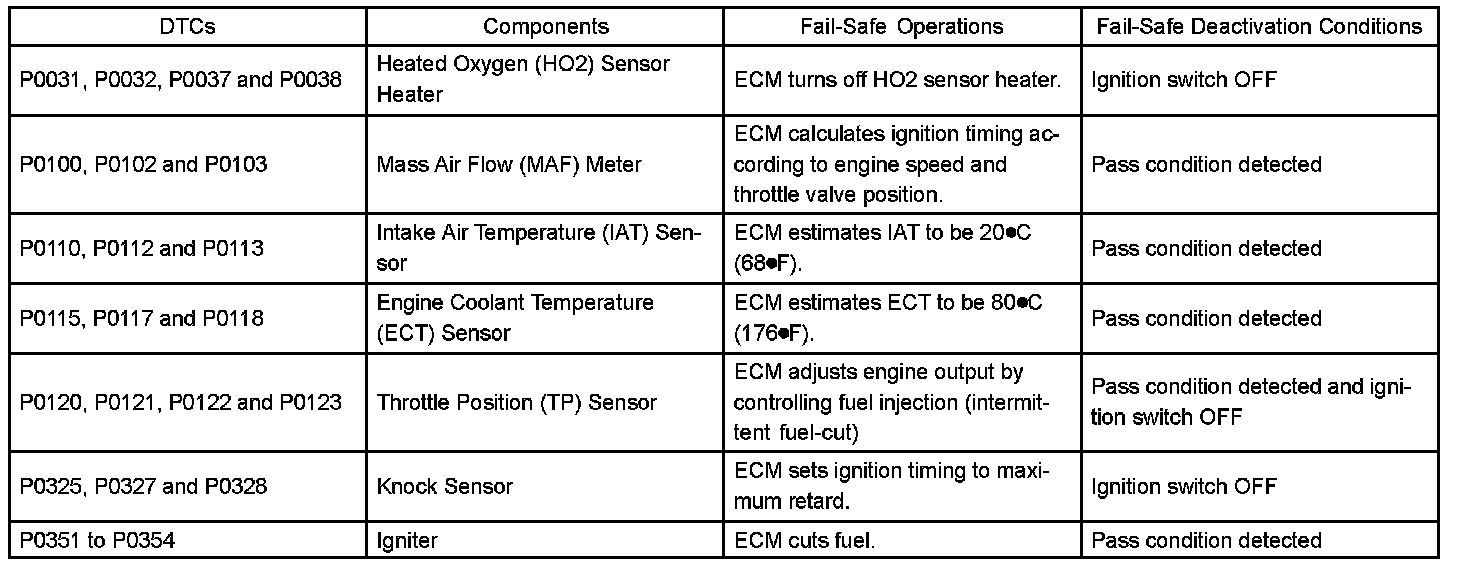 If any of the given DTCs are set, the ECM enters fail-safe mode to allow the vehicle to be driven temporarily.