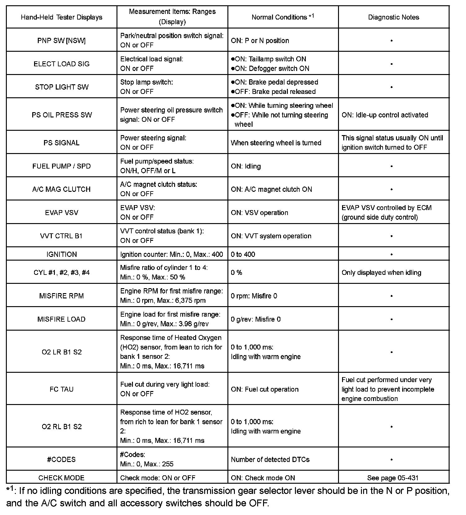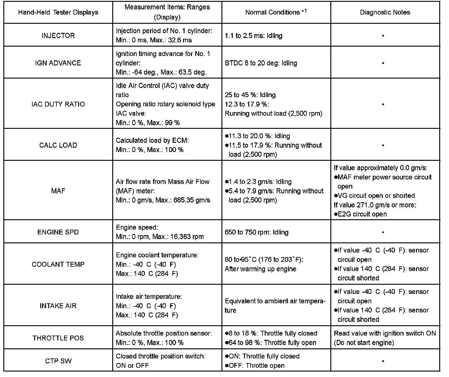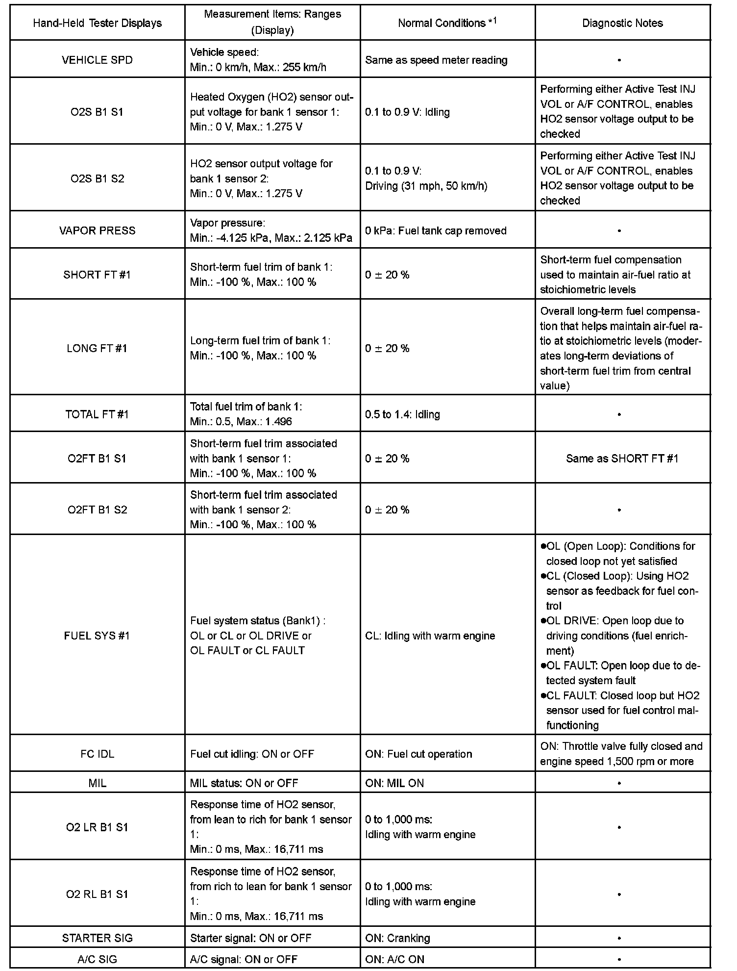 DATA LISTHINT: By reading the DATA LIST displayed on a hand-held tester or OBD II scan tool, you can check values, including those of the switches, sensors, and actuators, without removing any parts. Reading the DATA LIST as the first step of troubleshooting is one method of shortening diagnostic time.