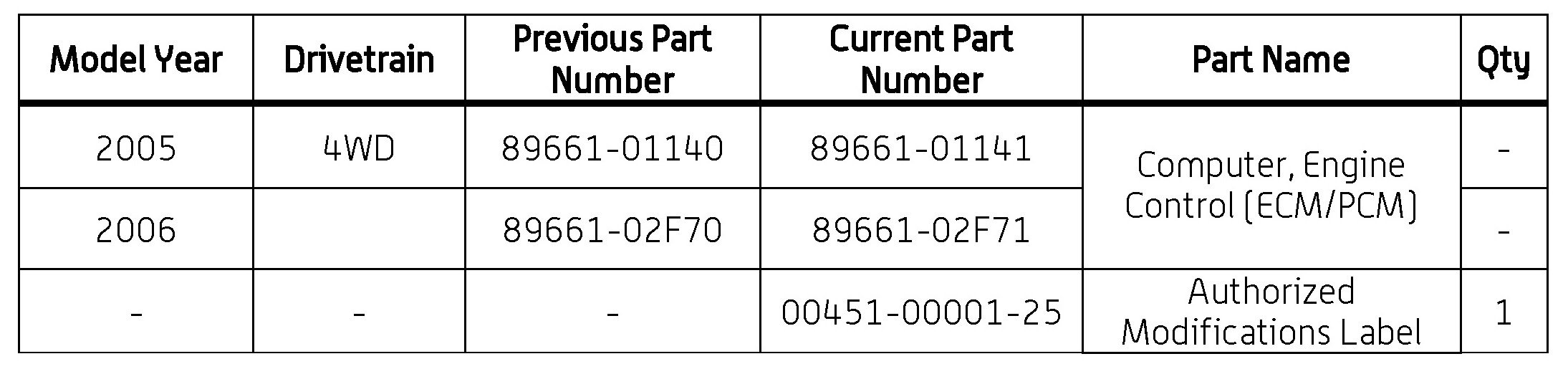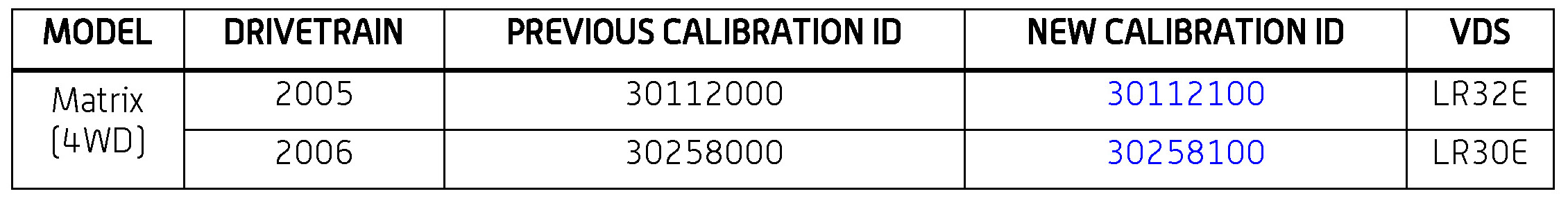 - Calibration ID(s) [Refer to the Calibration Identification Chart for the NEW CALIBRATION ID]