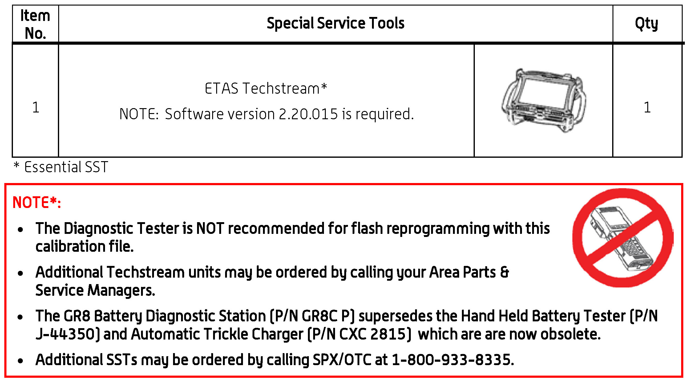 - For details on how to use the GR8 Battery Diagnostic Station, refer to the GR8 Battery Diagnostic Station Instruction Manual located on ETAS/TIS library > Tools > tools and equipment > GR8 Battery Diagnostic Station Instruction Manual.