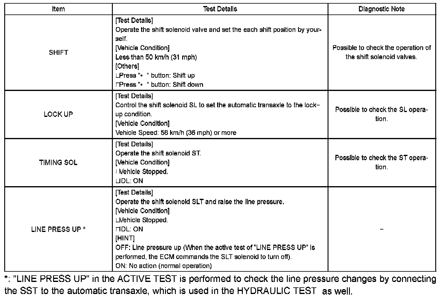 HINT: The pressure values in ACTIVE TEST and HYDRAULIC TEST are different from each other.