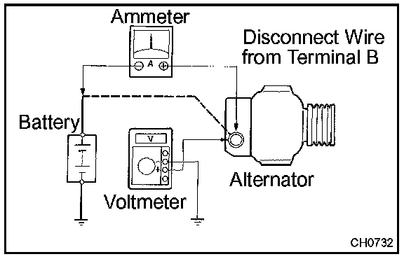 1. Disconnect to the wire from terminal B of the generator and connect it to the negative (-) lead of the ammeter.