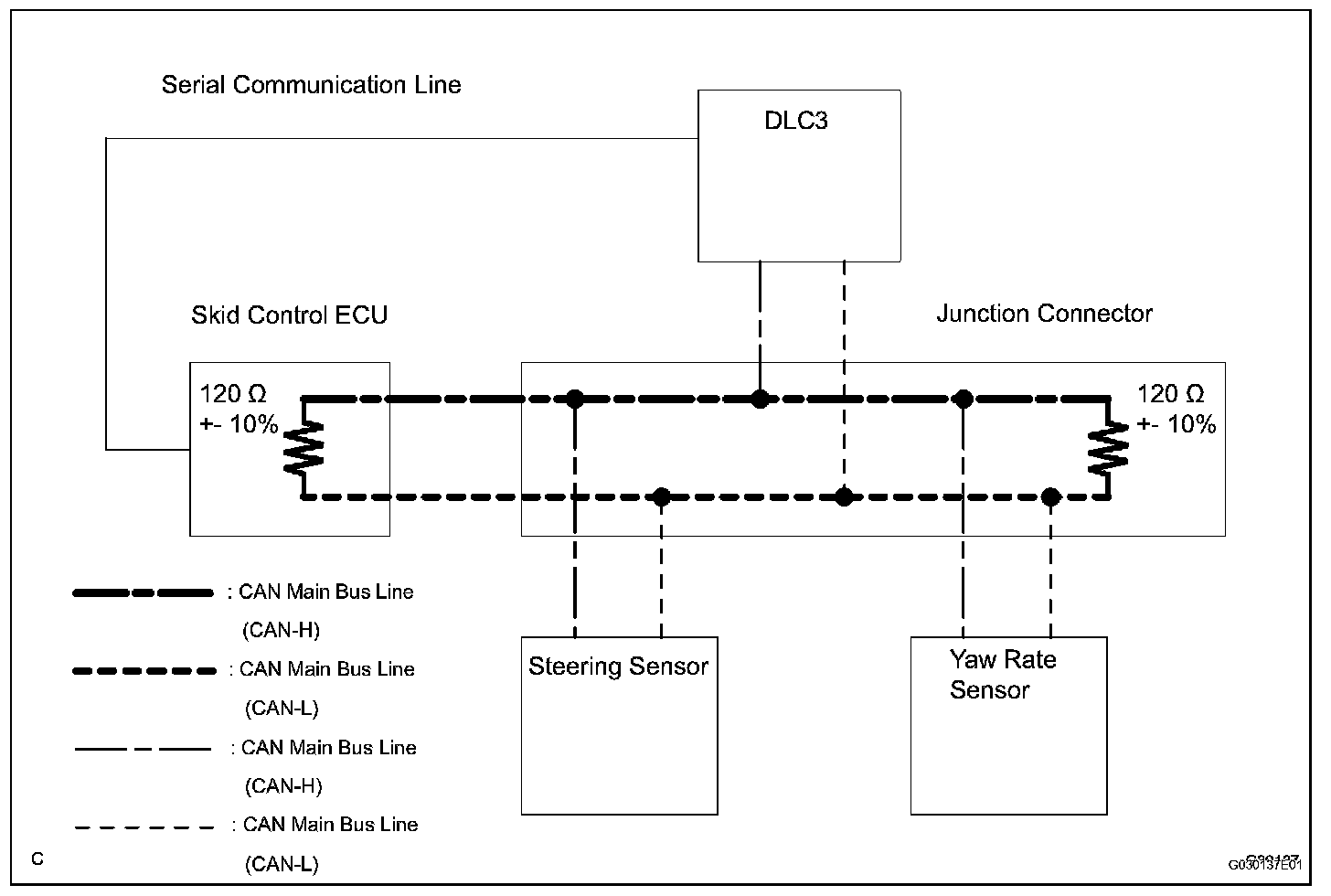 1. Main bus line is a wire harness between the two terminus circuits on the bus (communication line). This is the main bus in the CAN communication system.