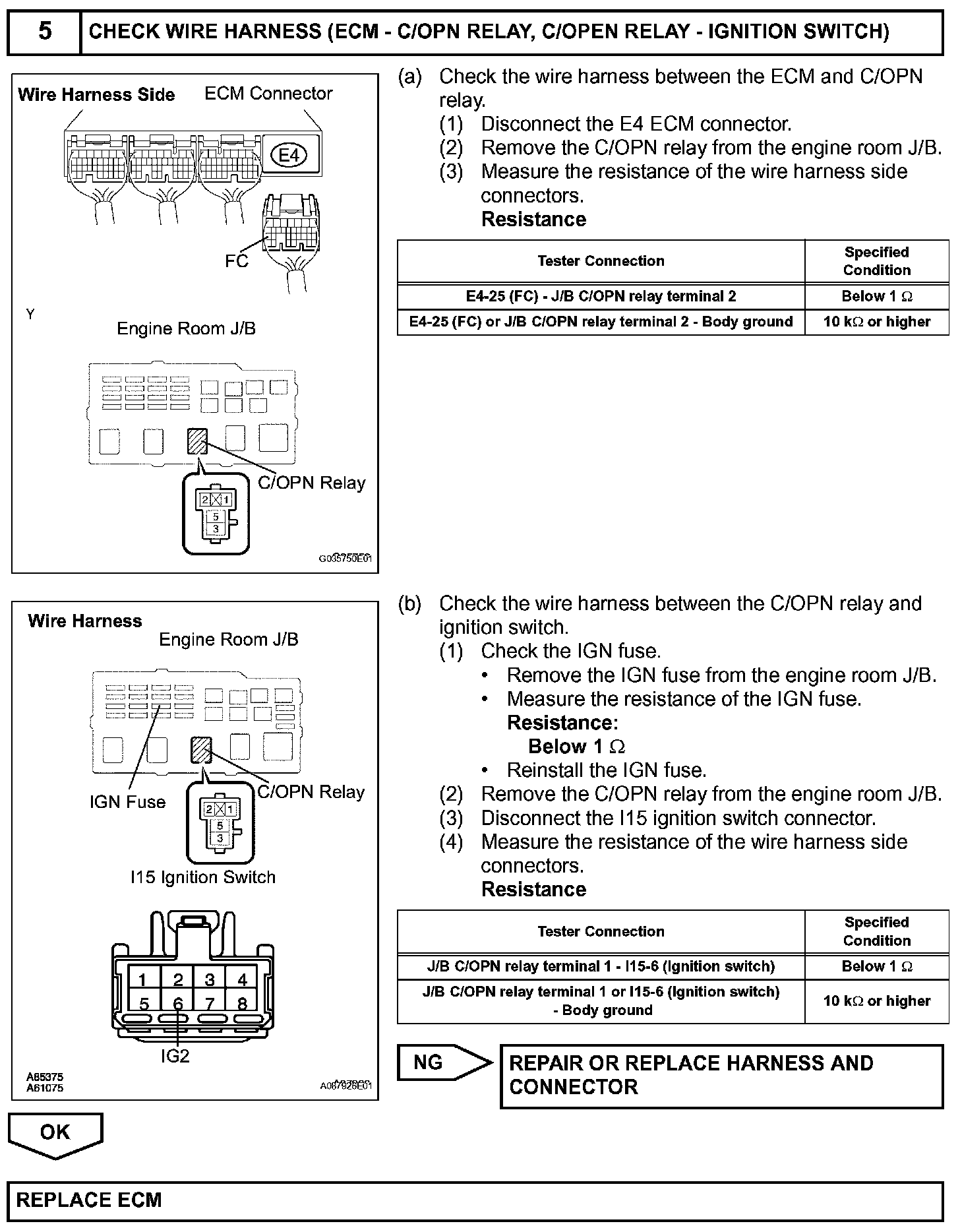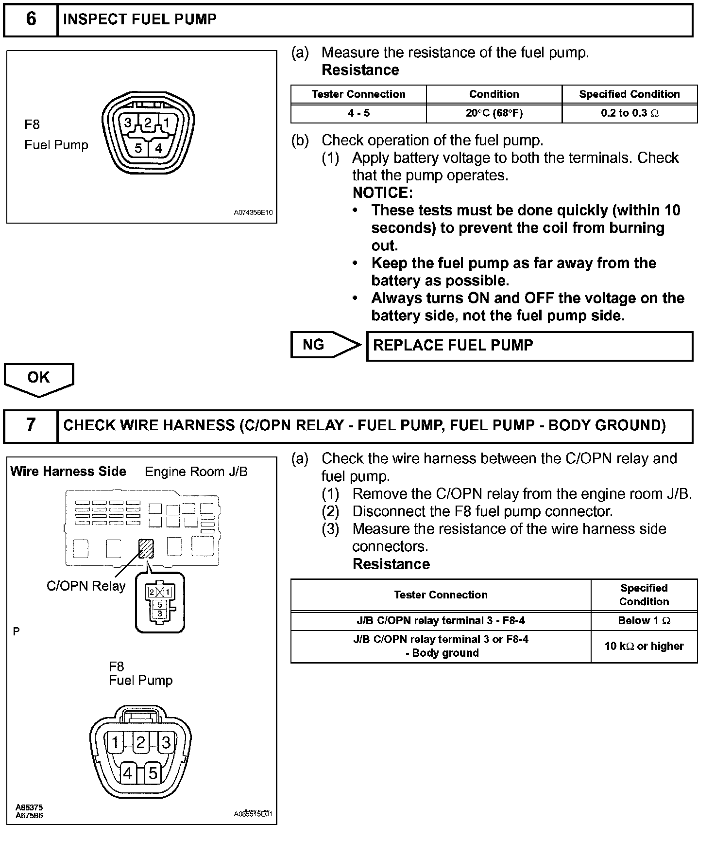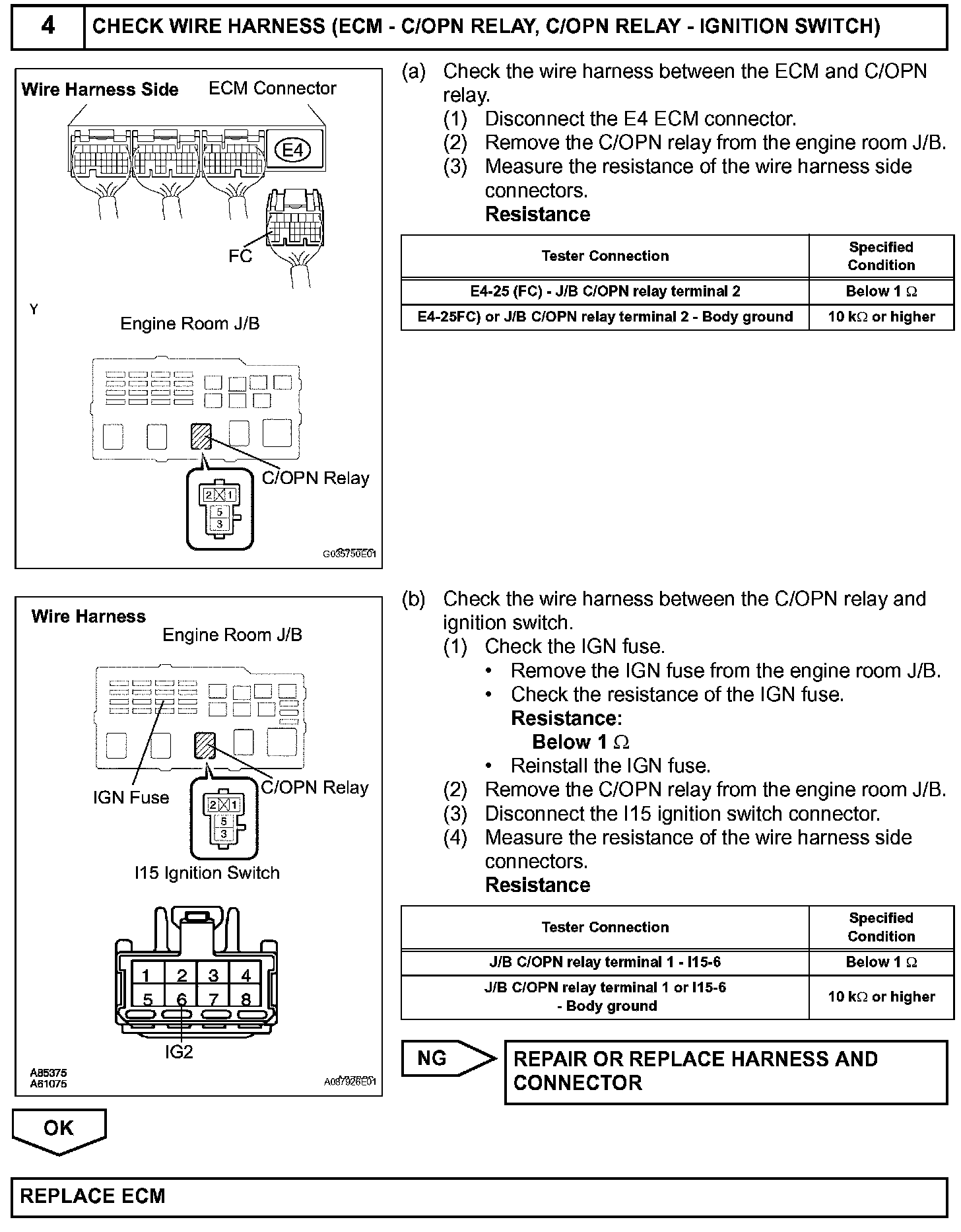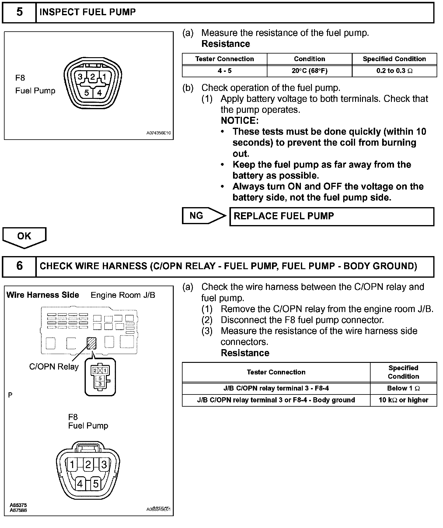 While the NE signal is generated and the engine is running, the ECM keeps Tr ON (C/OPN relay ON) and the fuel pump also keeps operating.