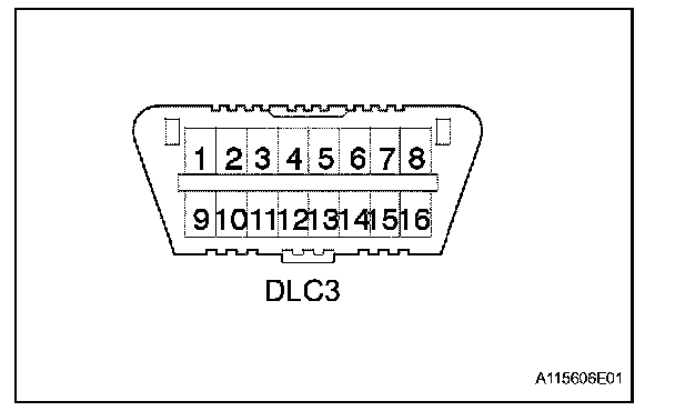 CHECK DLC3The vehicle's ECM uses the ISO 9141-2 communication protocol. The terminal arrangement of the DLC3 complies with SAE J1962 and matches the ISO 9141-2 format.