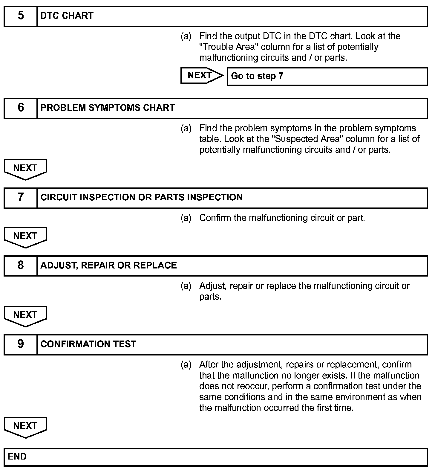 HINT: Perform troubleshooting in accordance with the procedures. The following is an outline of basic troubleshooting procedures. Confirm the troubleshooting procedures for the circuit you are working on before beginning troubleshooting.