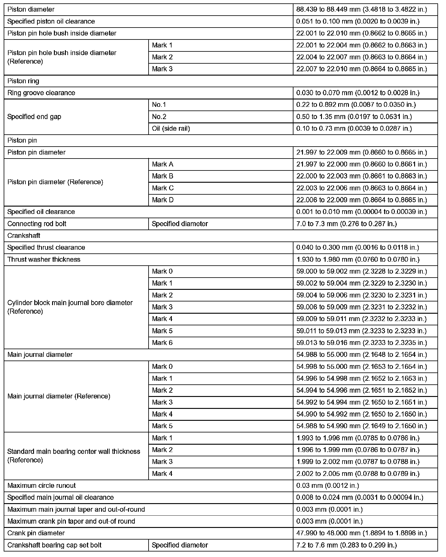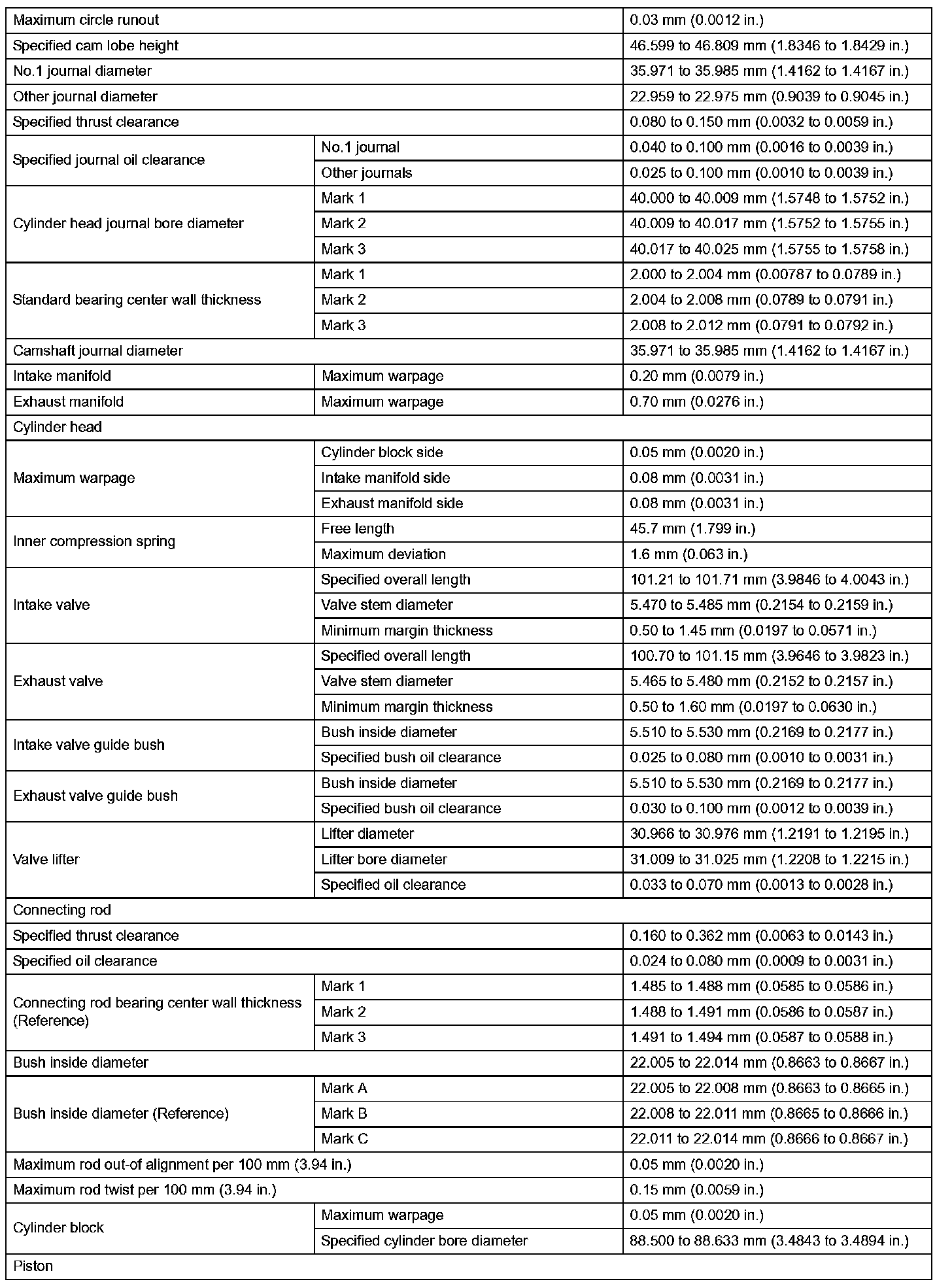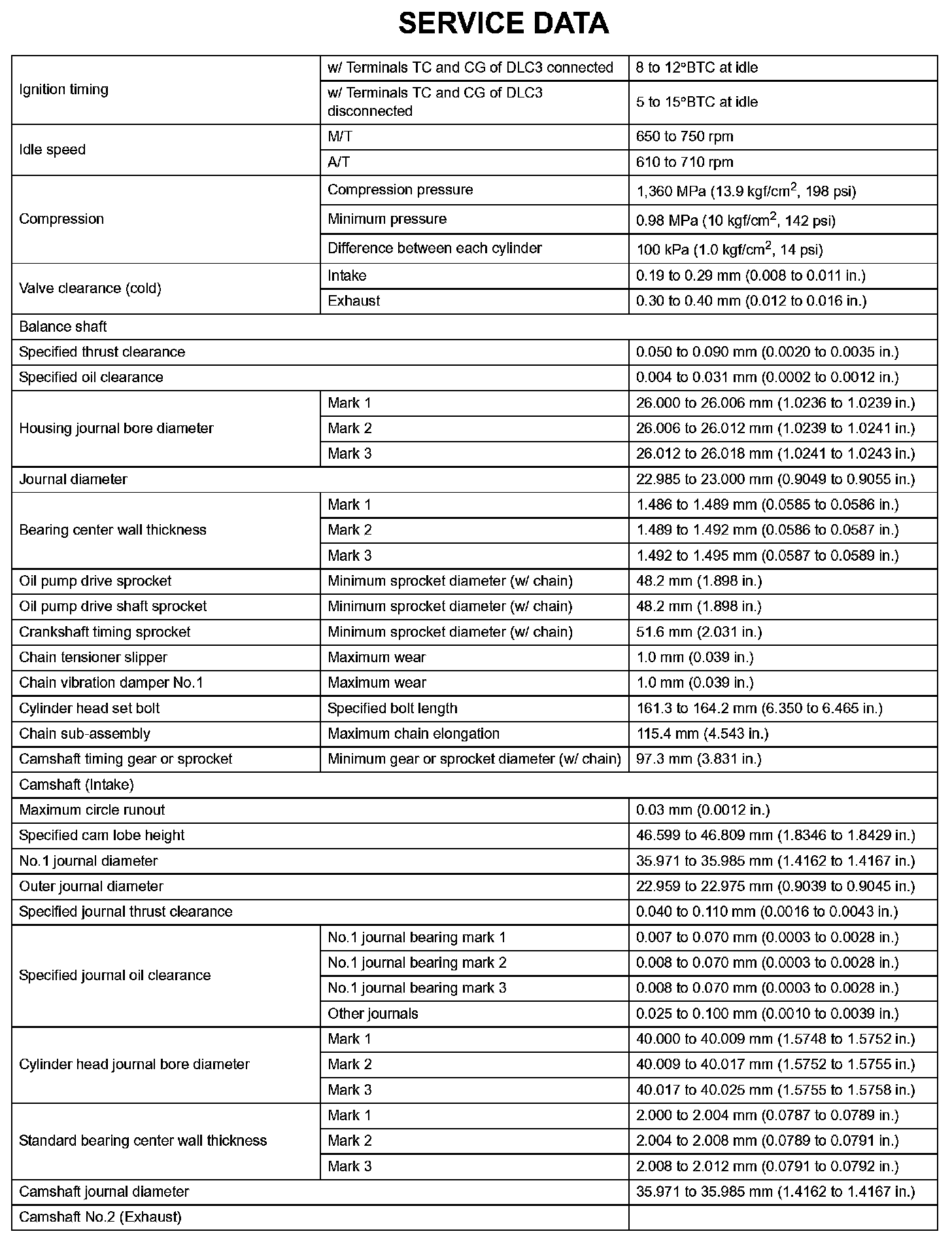 Engine Mechanical-Service Data (Part 2):