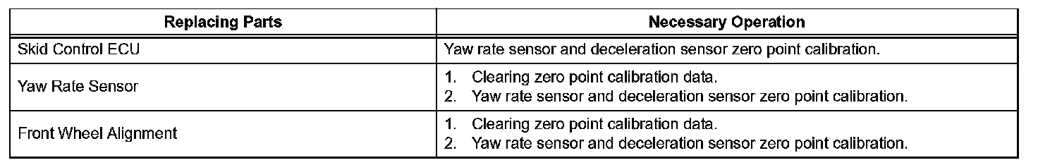 HINT: After replacing the yaw rate and deceleration sensor, make sure to clear zero point calibration data in the skid control ECU and perform zero point calibration.