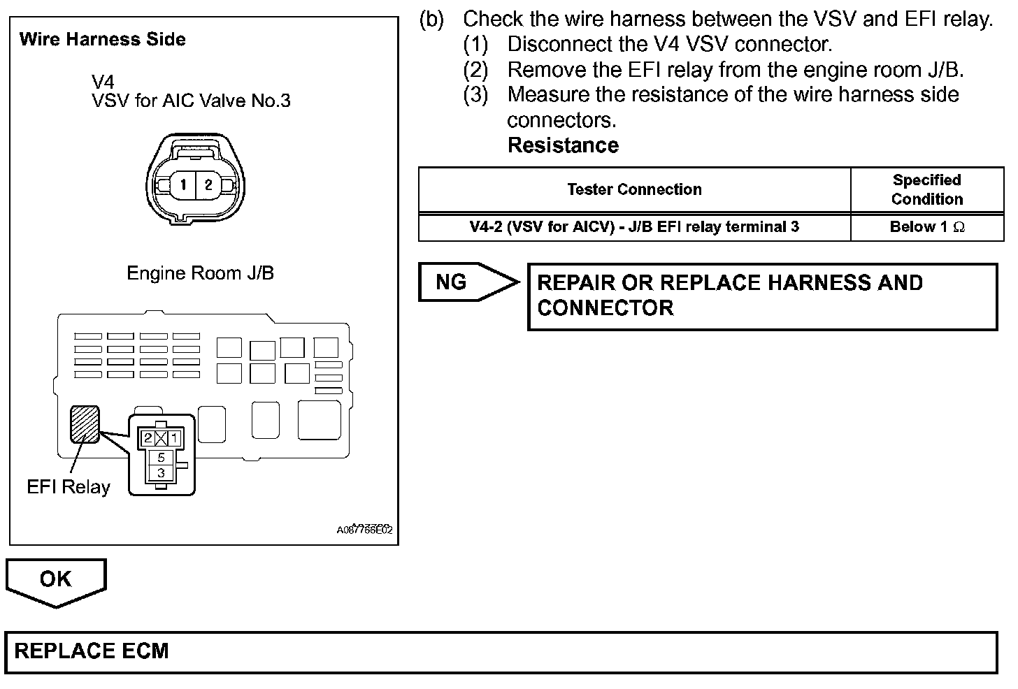 When the engine is operating at low to mid speeds, this system operates the IAC valve to close one of the air cleaner inlets. When the engine speed is more than 3,200 rpm and the opening angle of the throttle valve is more than 30 degrees , the ECM activates the VSV and opens the IAC valve No. 3.