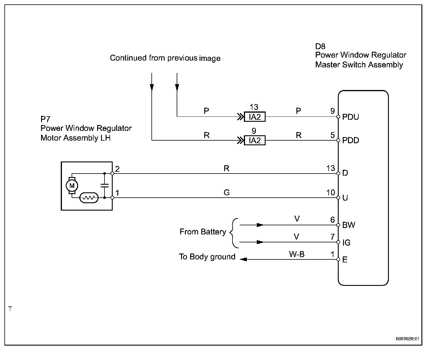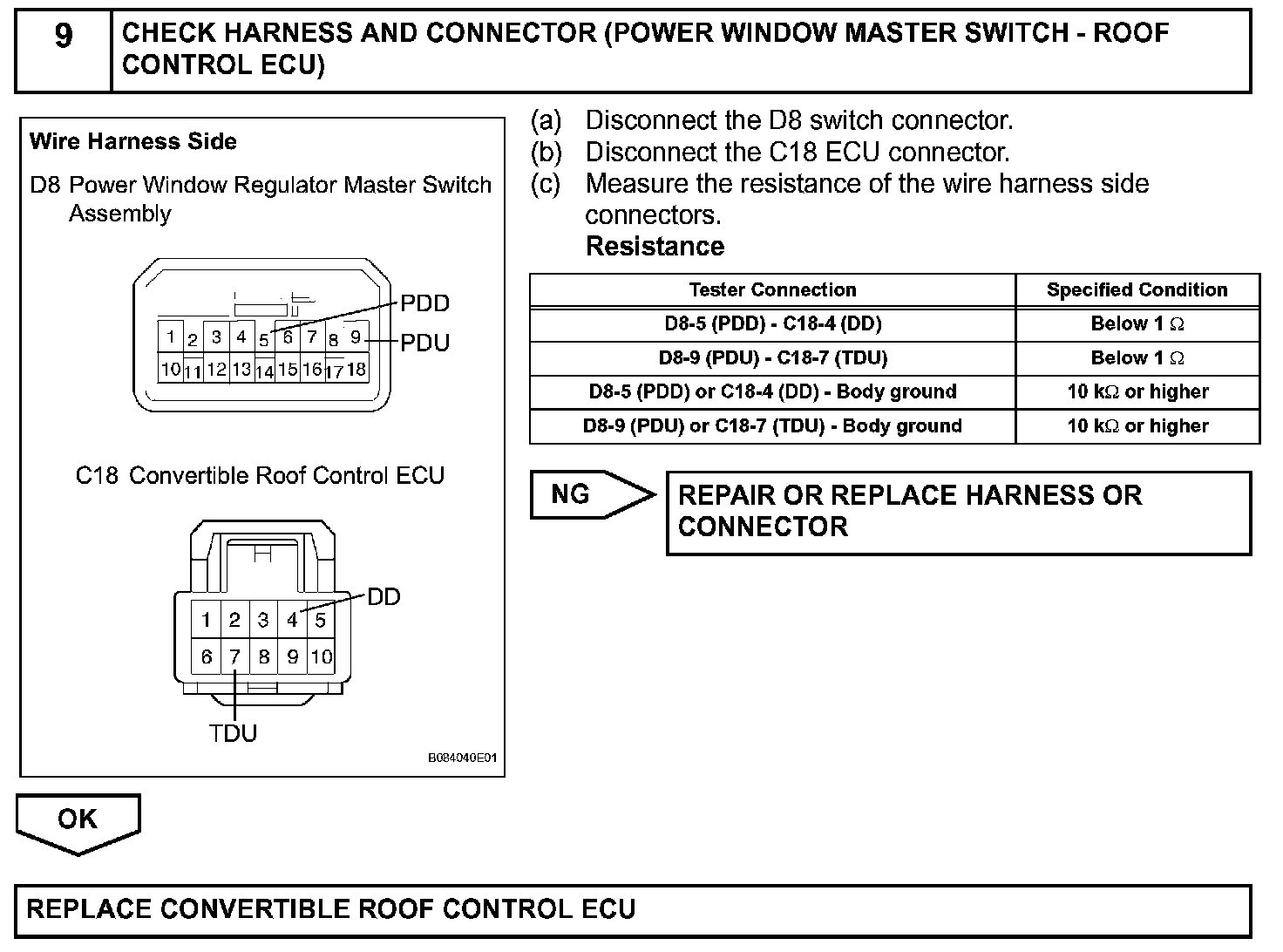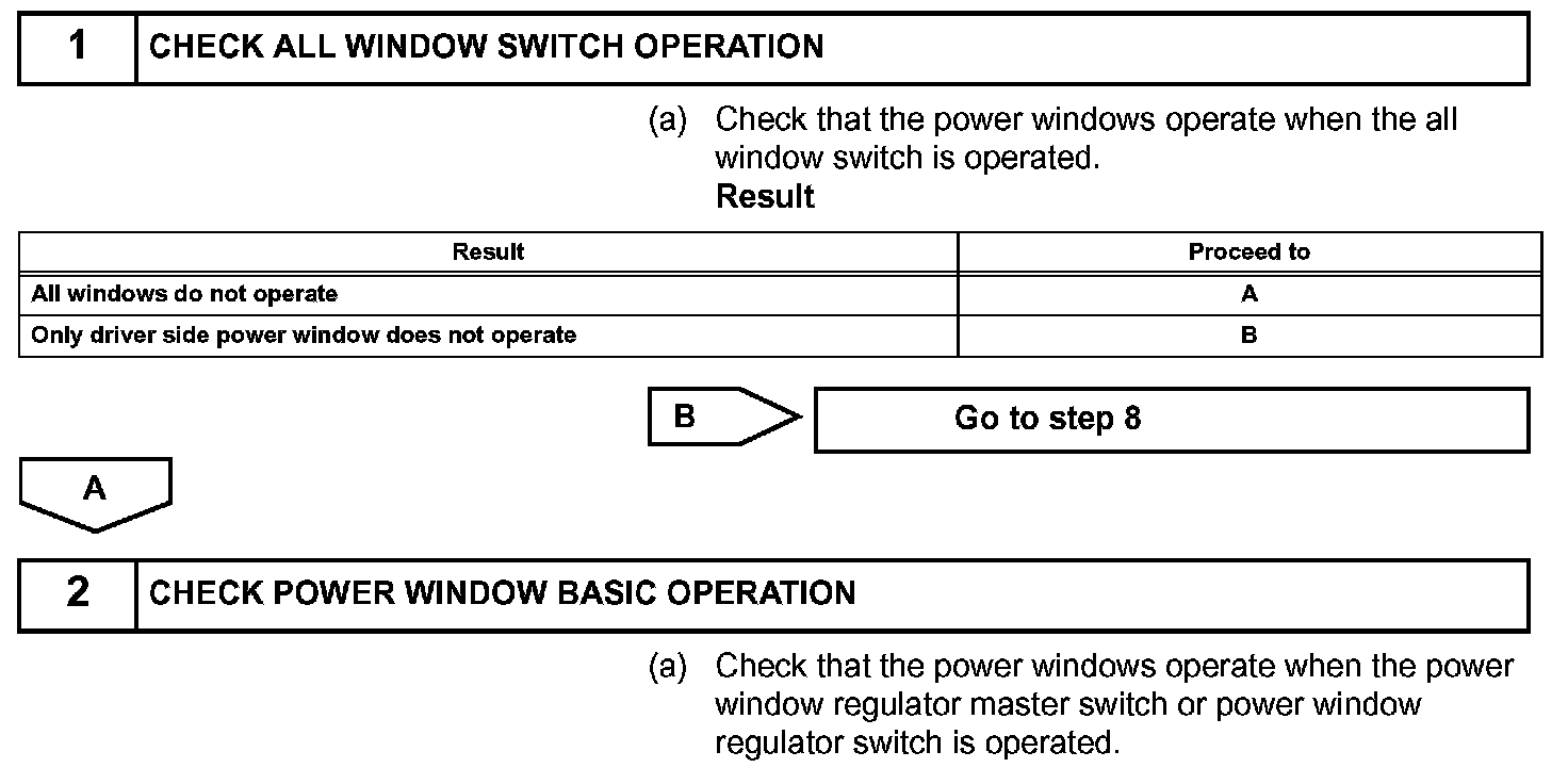 The all window switch can operate all the power windows. The all window switch outputs signals to the convertible roof control ECU which activates the passenger, quarter LH/RH window regulator motors directly. For the driver window regulator motor, the convertible control ECU outputs signals to the master switch, and the master switch activates the driver window regulator motor.